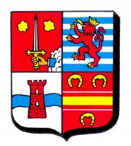 Le blason de la Ville d'Hagondange dans la silhouette du territoire des Rives de Moselle.